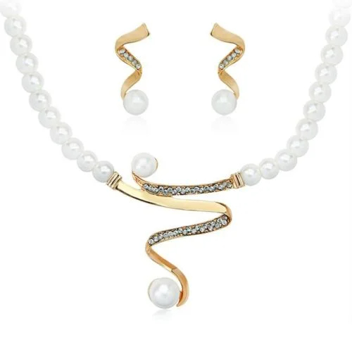 Add a touch of timeless elegance to your look with this pearl pendant necklace and stud earring set. Crafted from high-quality alloy and rhinestones, this set offers excellent corrosion and oxidation resistance, ensuring long-lasting shine and durability. The open-design necklace features a radiant pearl pendant accented with sparkling rhinestones, beautifully highlighting the collarbone for a refined, graceful look.