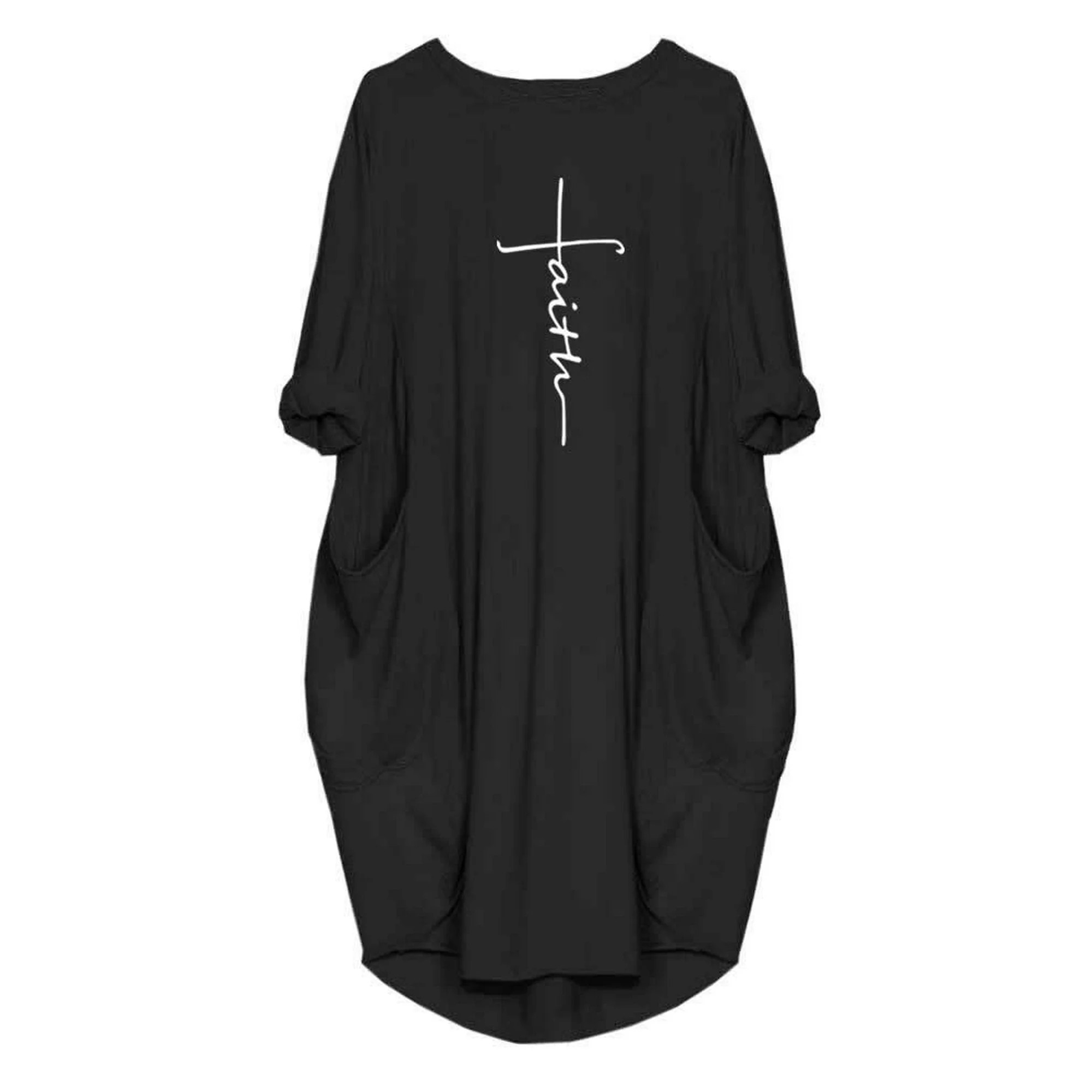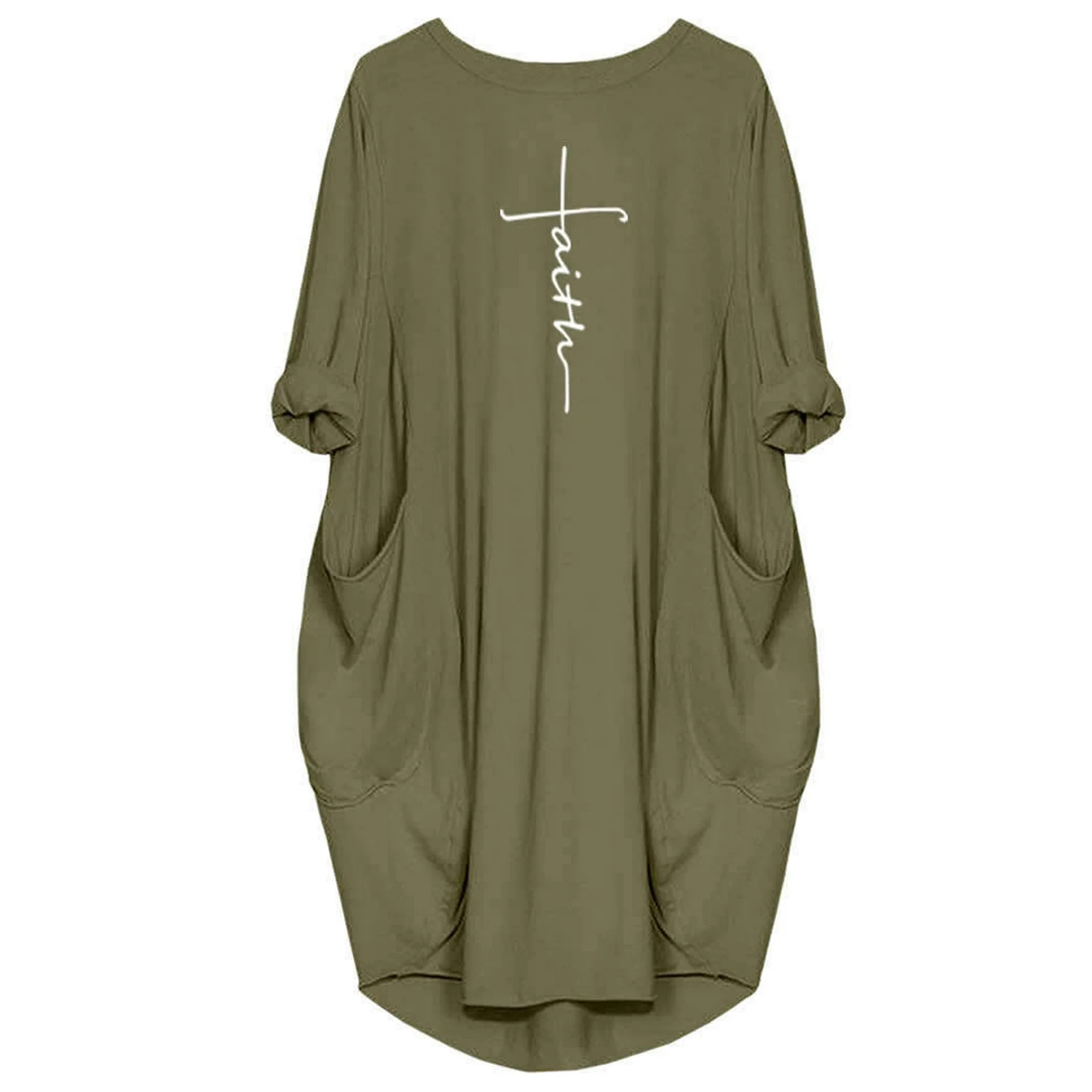 Wear your belief with quiet confidence in the Faith Over Fear Long Sleeve T-Shirt Dress. Made from soft, breathable polyester with a touch of micro-stretch, this relaxed silhouette drapes beautifully for everyday comfort while keeping a flattering shape. The minimalist “Faith” chest print adds a meaningful, stylish detail that elevates a casual look into something personal and inspiring.
