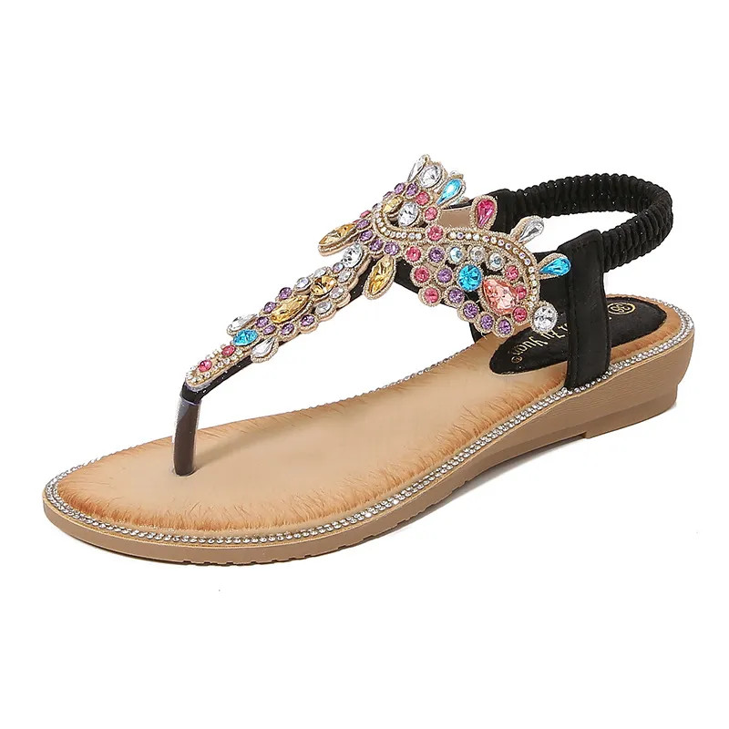 Jeweled T-Strap Bohemian Sandals