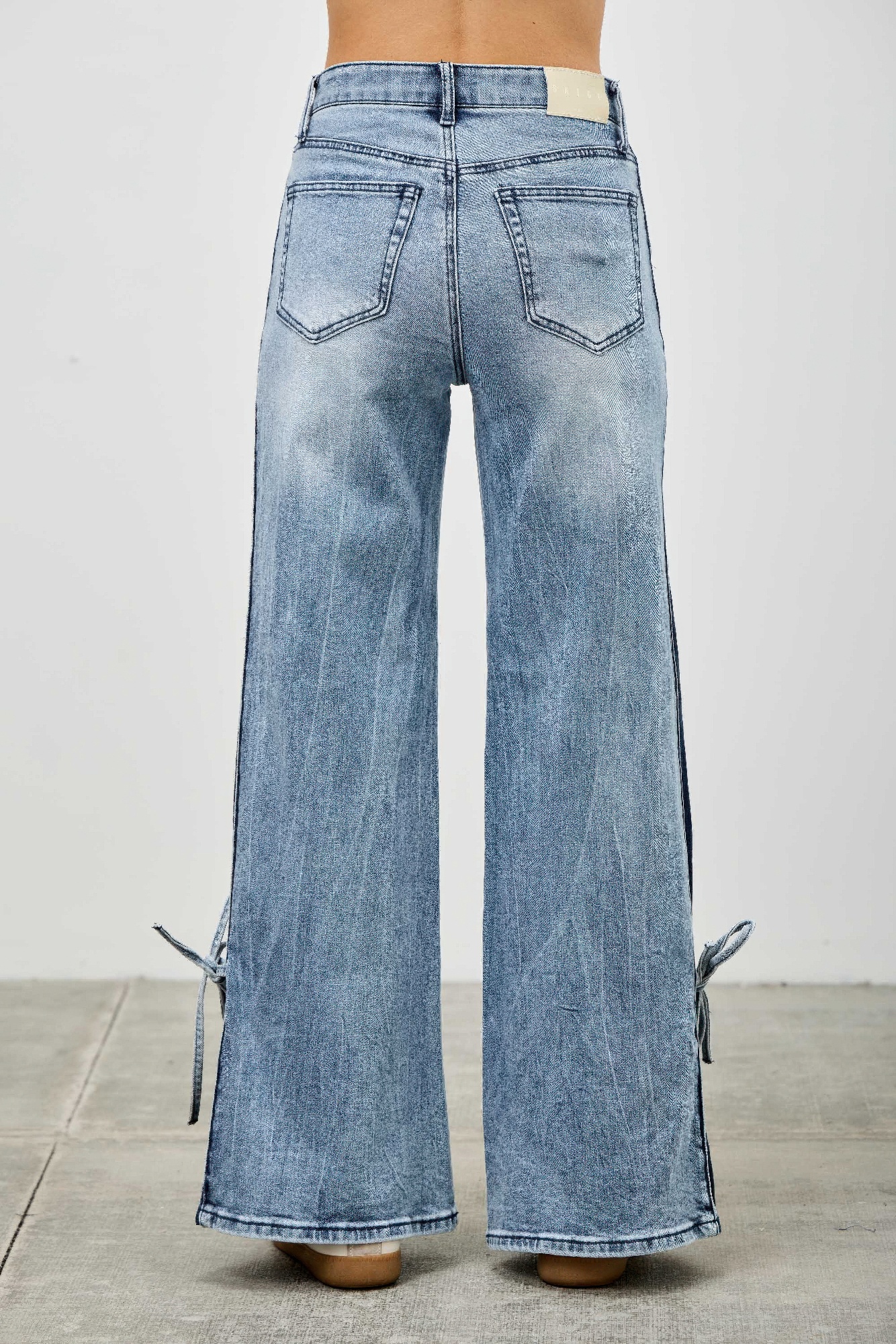 Mid-rise fit with contrast wide leg design