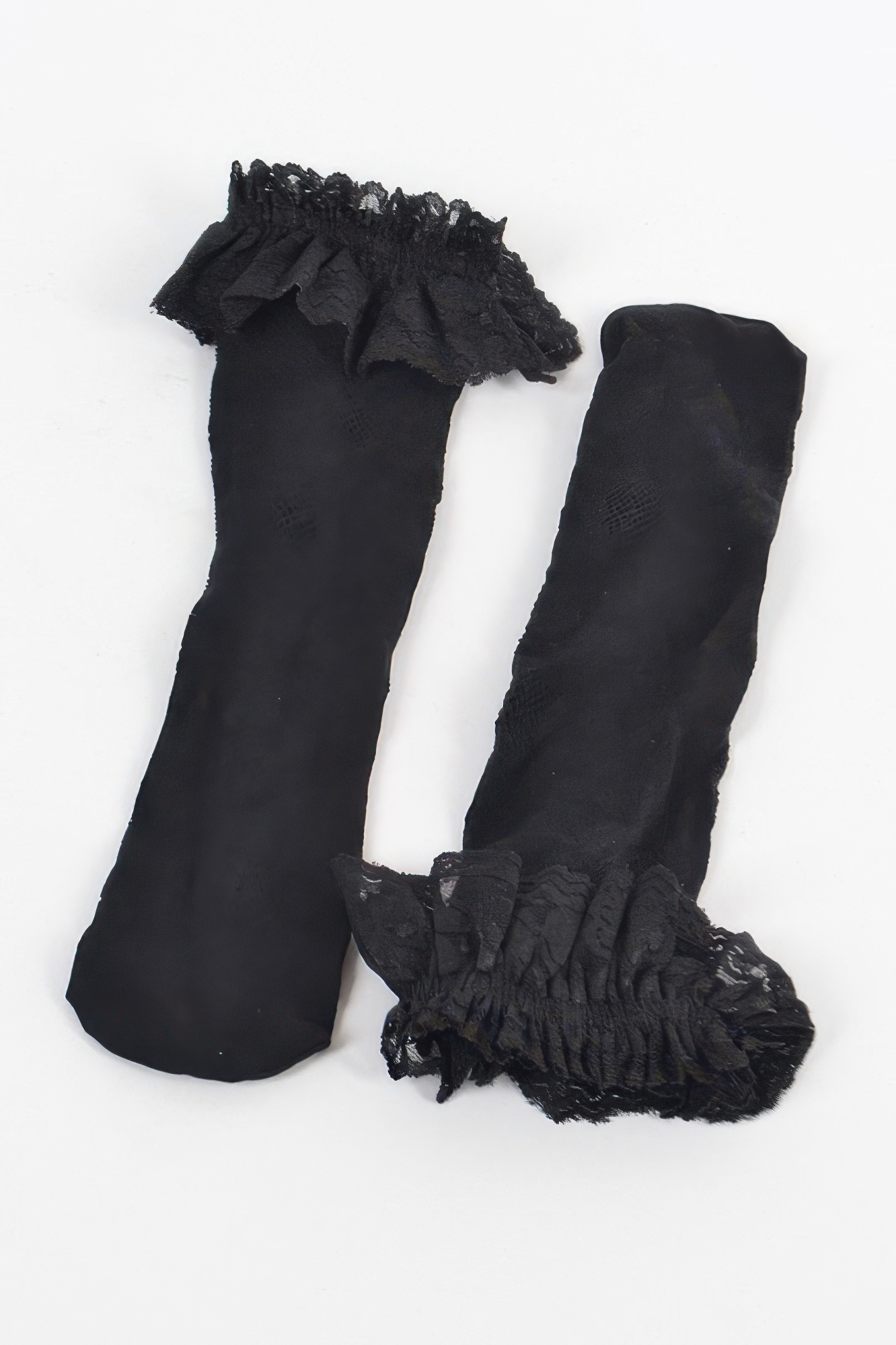 Elevate your footwear game with these exquisite Midnight Bloom Ruffle Lace Ankle Socks. Designed for the woman who loves a touch of Victorian elegance mixed with modern femininity, these socks feature an intricate, semi-sheer floral lace pattern throughout the foot and ankle.