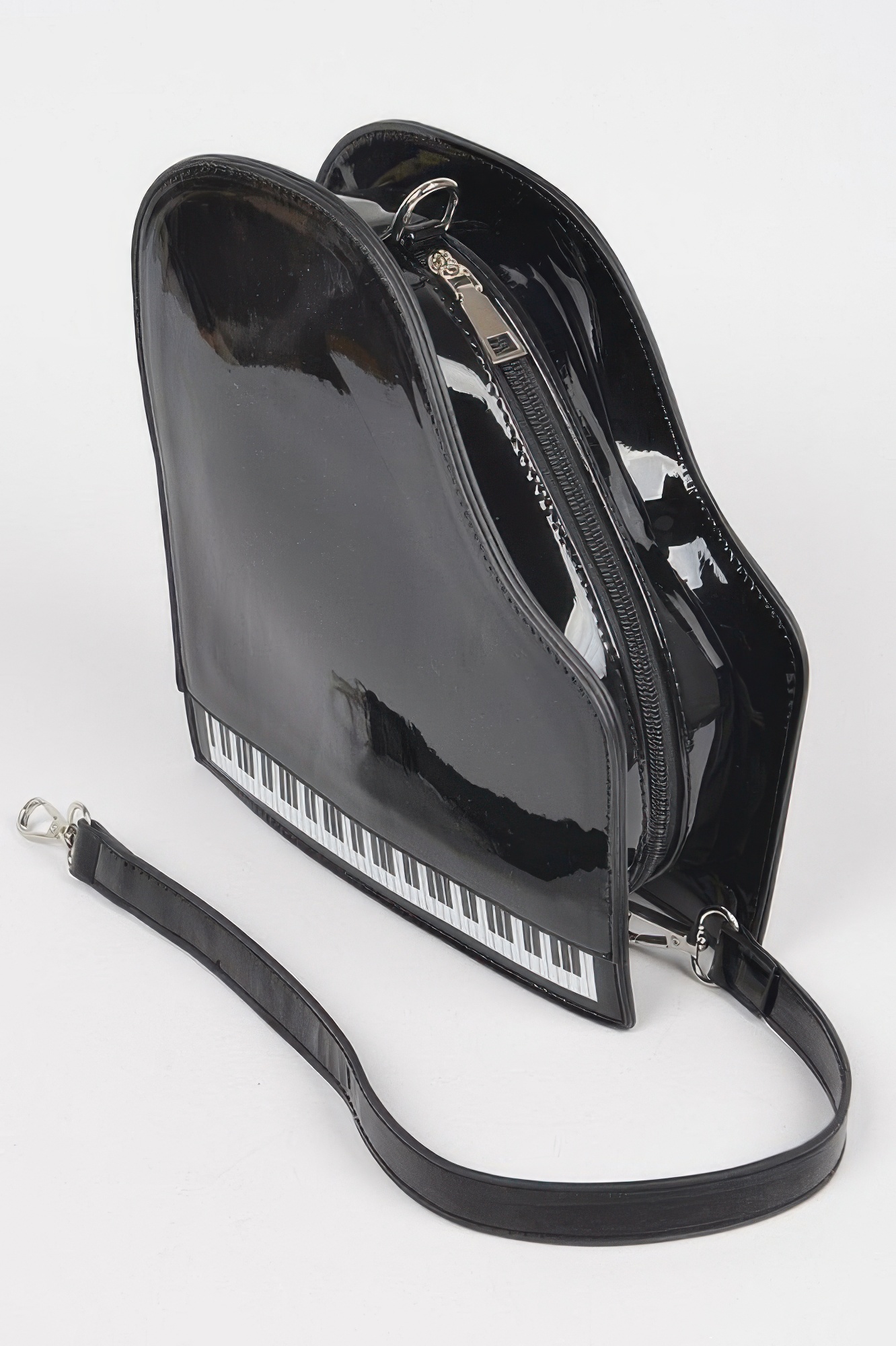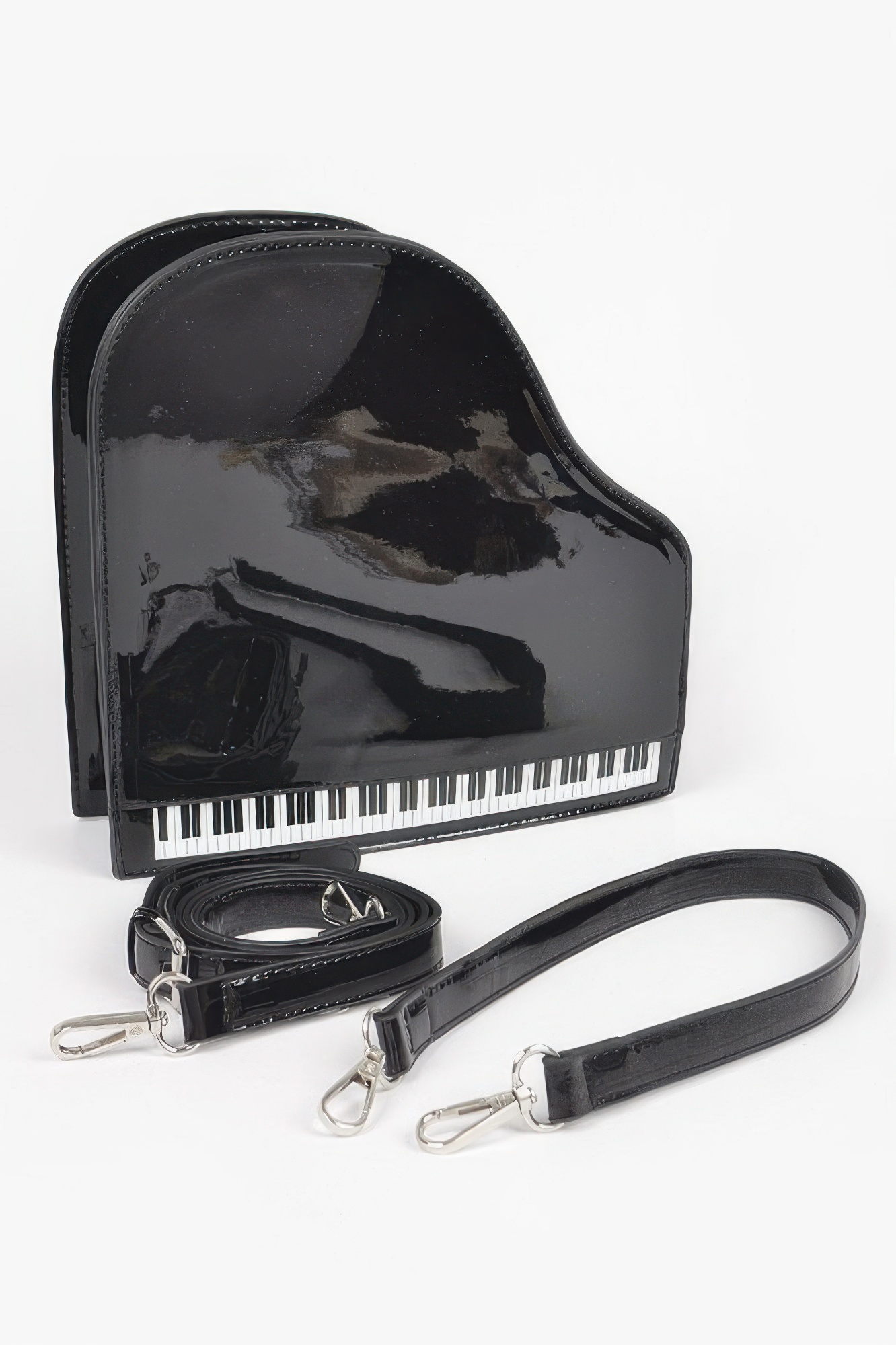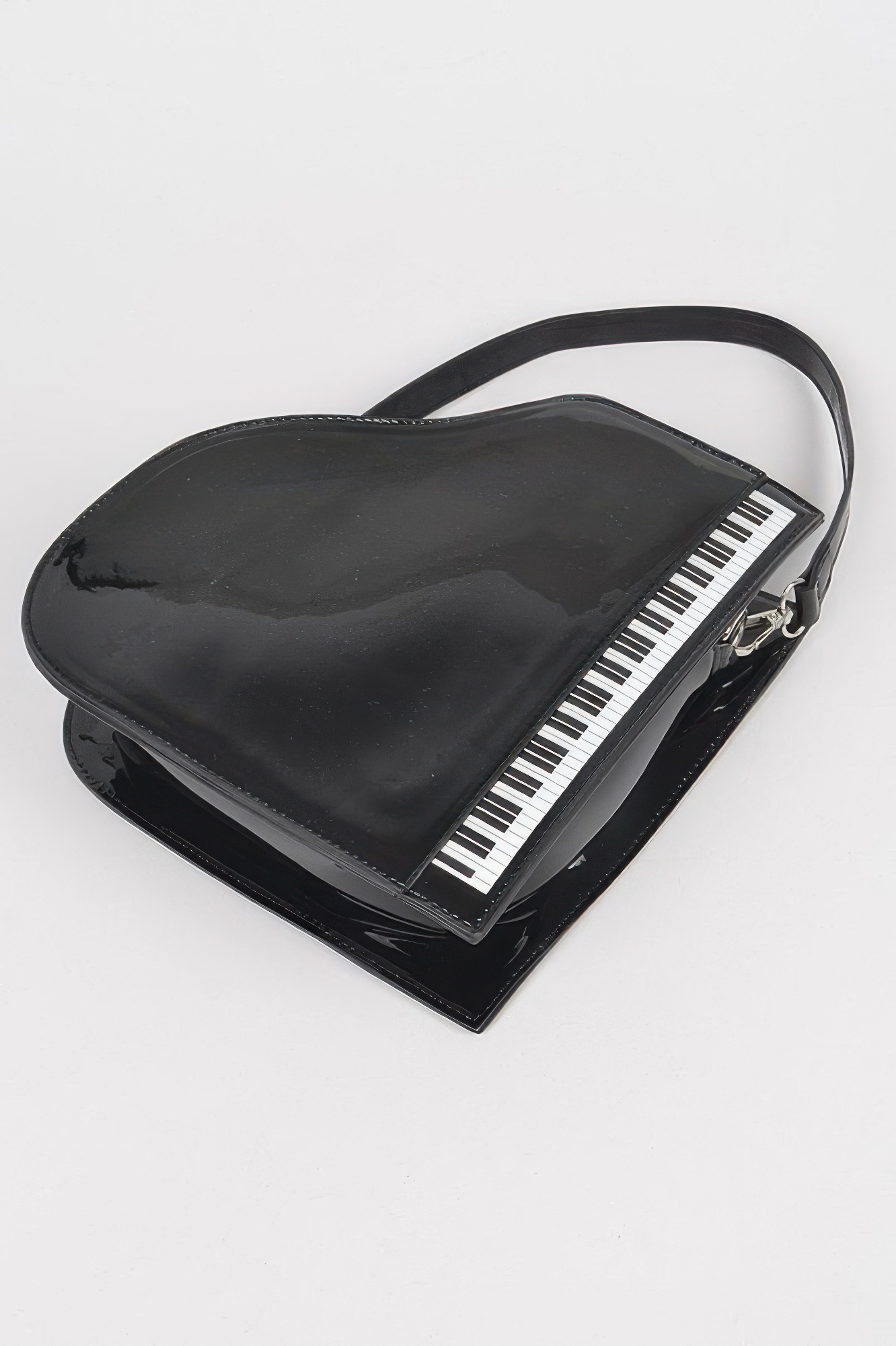 Hit the right note with the Piano Novelty Bag — a playful and artistic accessory that turns heads. Shaped like a grand piano, this structured bag brings creativity and charm to your look. The polished surface and clean lines give it a graphic, fashion-forward feel. Ideal for music lovers or anyone who appreciates standout design, it's the perfect conversation piece for events or casual outings. It fits small essentials and can be carried by hand or worn crossbody for versatility. Durable mixed metal accents enhance its structured design while adding a refined finish. A must-have novelty bag for fashion and fun in one.