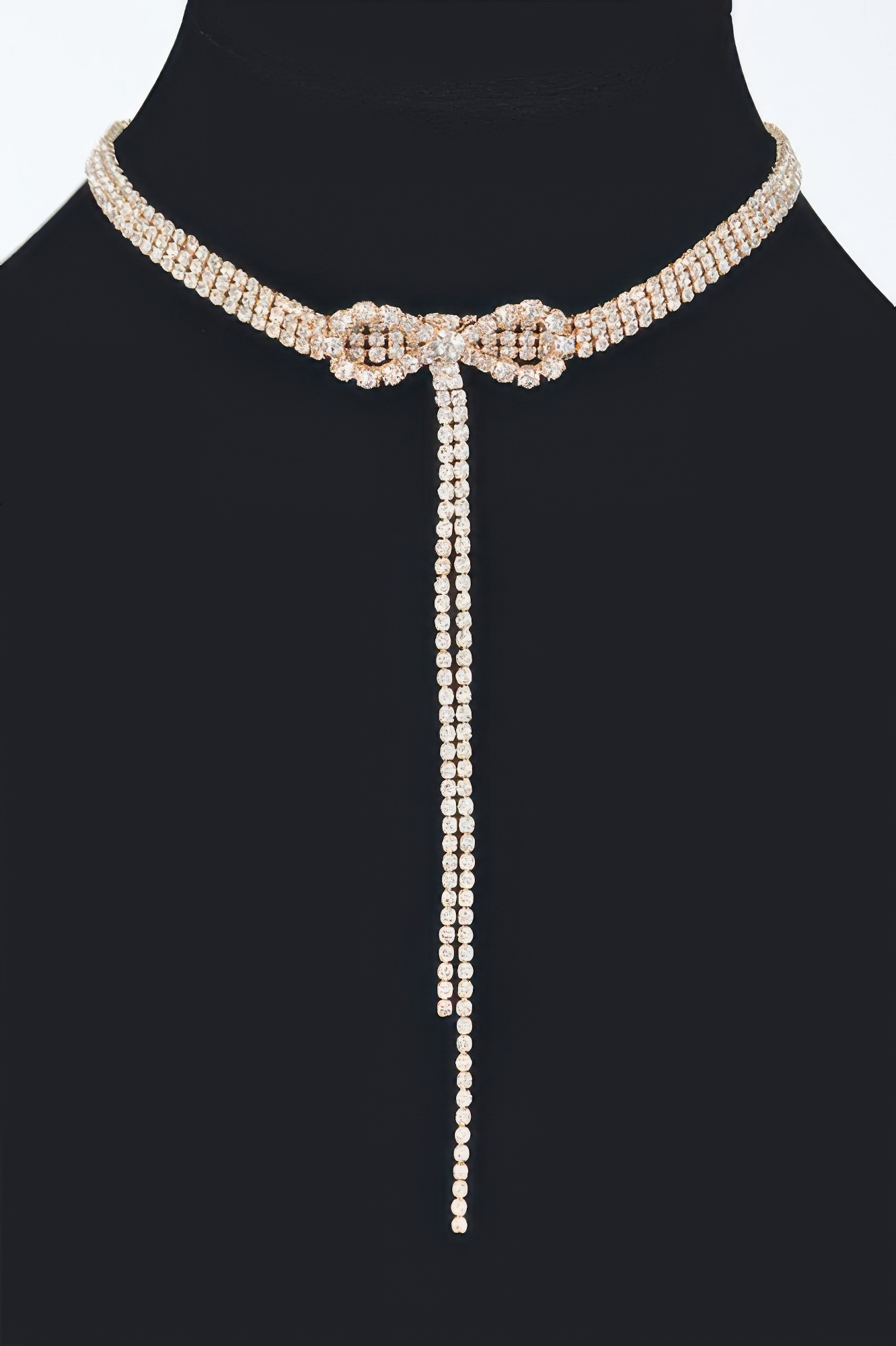 Rhinestone bow accent adds delicate flair
