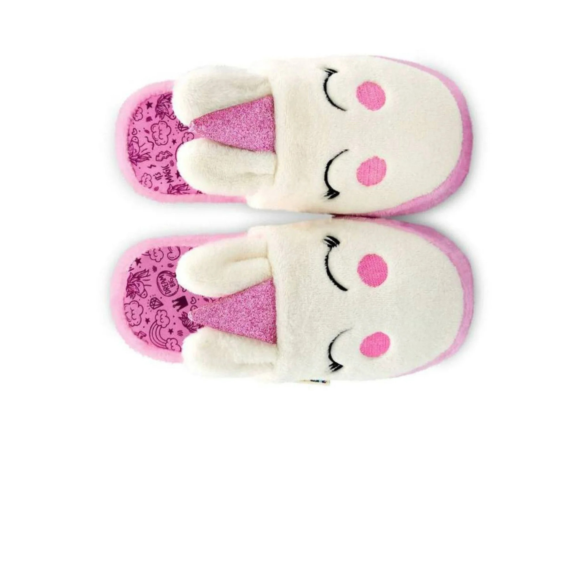 Add a dash of whimsy to your loungewear with these Soft Unicorn Plush Slippers! Designed with sleepy embroidered eyes, rosy cheeks, and a sparkly pink unicorn horn, these slippers are cute and comfortable. The fluffy white exterior and whimsical doodles make them the perfect mix of comfort and charm.
