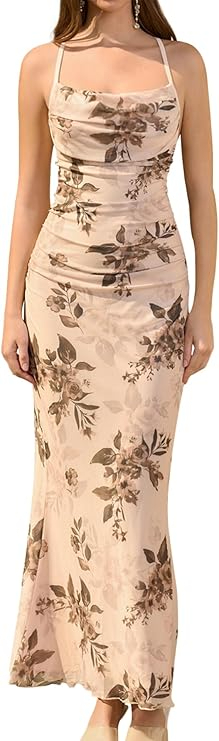 - Style: Spaghetti-strap floral bodycon maxi dress