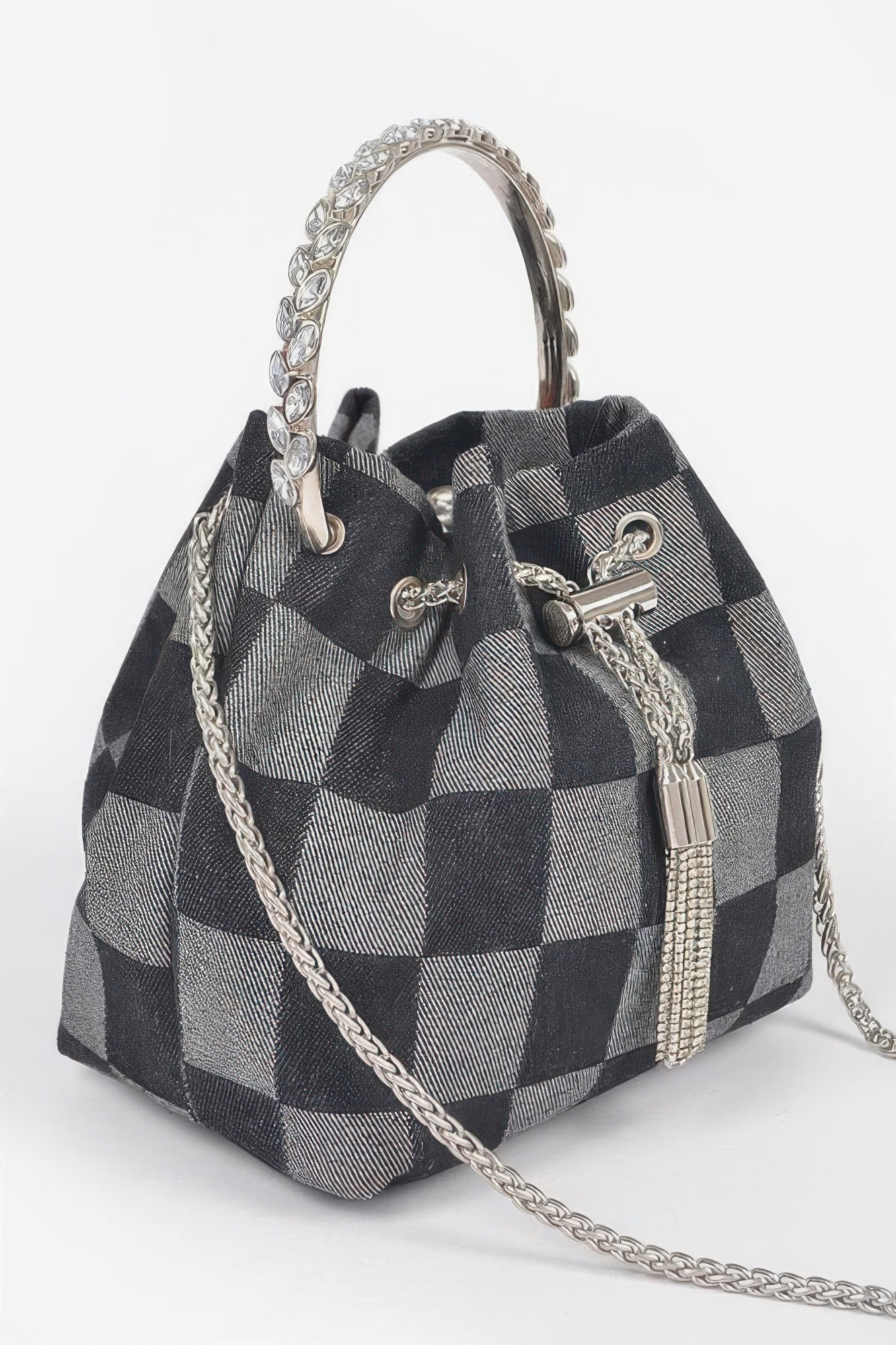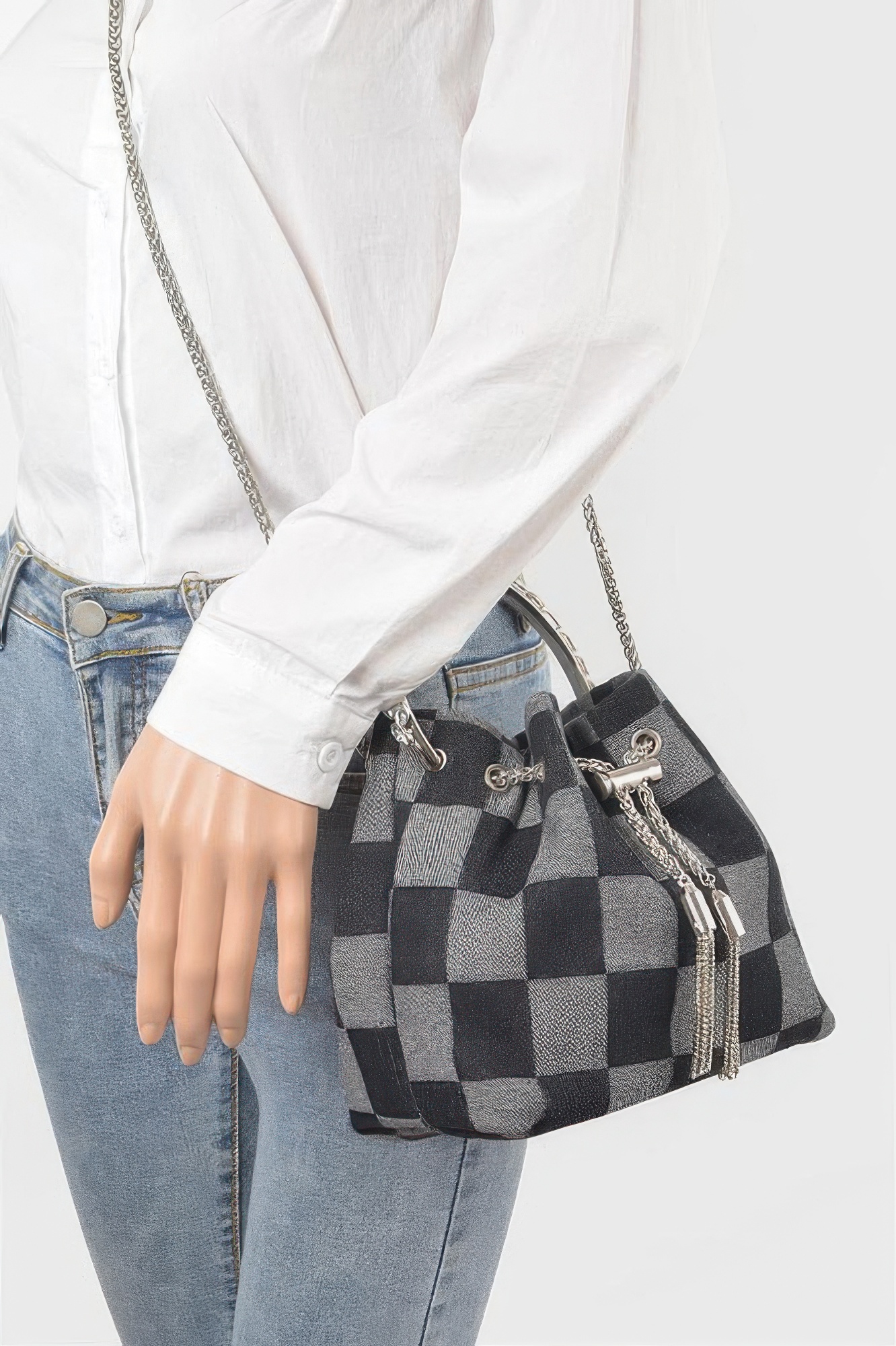 Made with denim and mixed metal materials